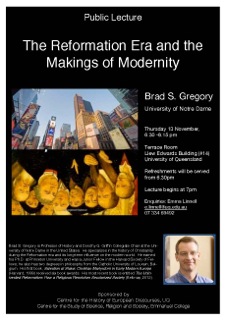 “The Reformation Era and the Makings of Modernity” by Prof Brad Gregory (University of Notre Dame)